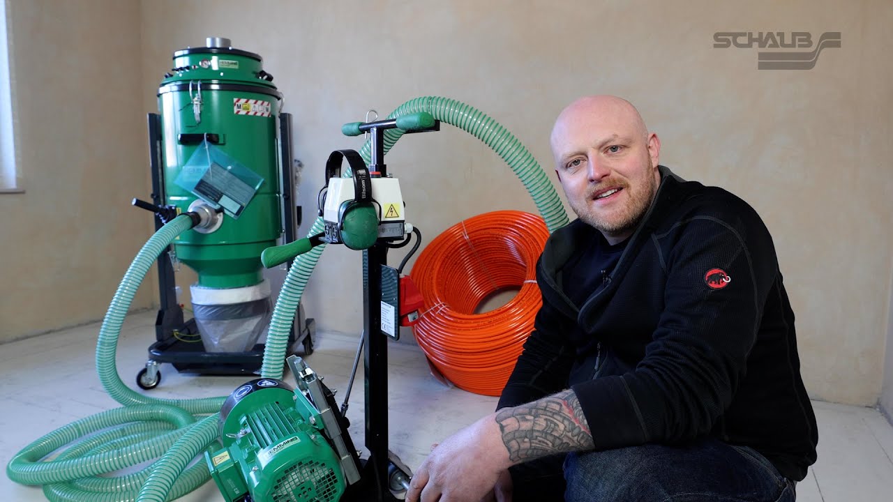 Wie kommt die Fußbodenheizung in den Altbau? Ganz einfach – mit Hilfe von Frästechnik. Uli Schaub jun. erklärt vor laufender Kamera anschaulich, was die Vorteile einer solchen Installation sind.